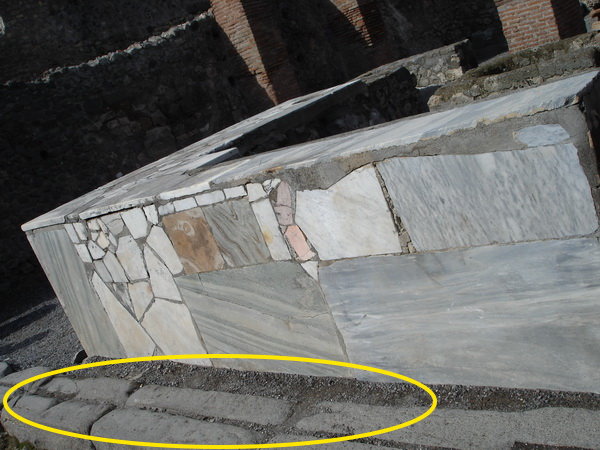 再來就繼續回到龐貝古城的街道上啦!第一張呢,是當時的出水孔飲水機囉!是有圖案的。(後來的真理之口其實是原本的水溝蓋,也是有圖案的,不知道有沒有相關。)