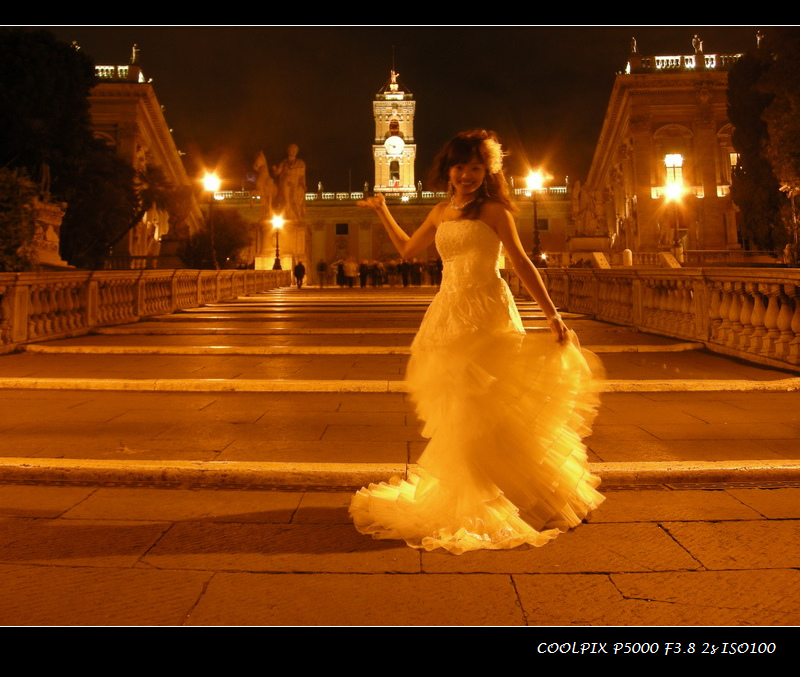 之前看到其他人在國外拍婚紗覺得好羨慕。愛作夢的我,我興起在蜜月拍婚紗的念頭,雖然第一次被老公阻止了..但是我這念頭一直沒有打消過..直到有一天,我突然想到~~~~~華友的羅馬夜遊有專業攝影師喔!我就藉由這點說服了我家老公啦!因為只要準備好婚紗,自己化好妝,攝影師就會幫忙拍照啦,多賺幾張婚紗照有何不好呢