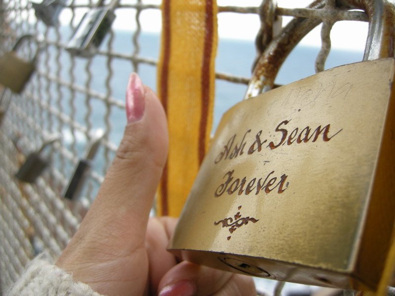 山壁的防護網都會被鎖上鎖頭,應該是象徵把愛情牢牢的鎖上吧