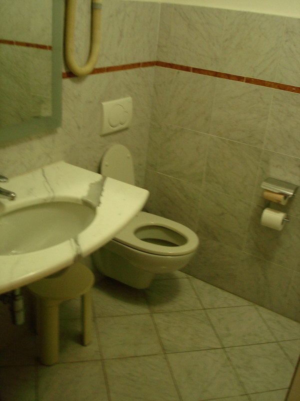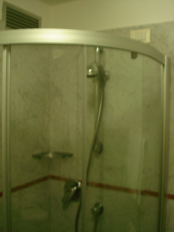 (義大利飯店浴室,除了浴缸,地板是沒排水孔的,唯一有看到就是在比薩的飯店↓ )