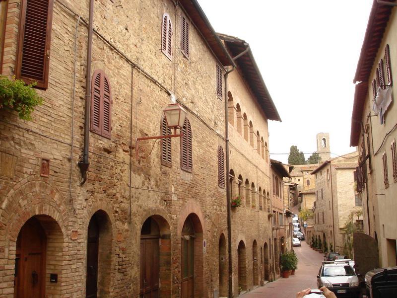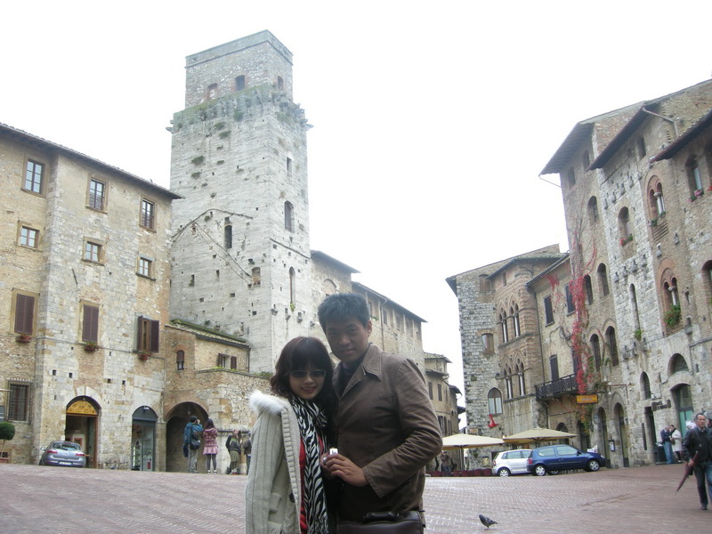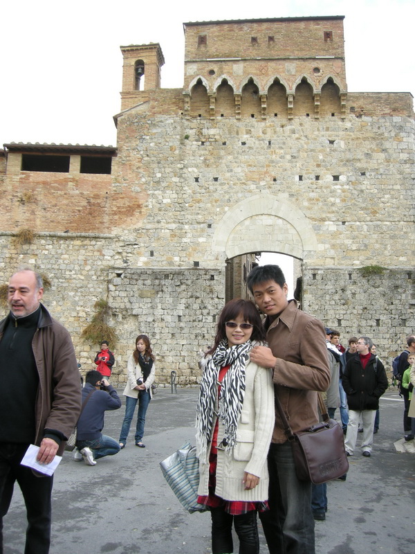 這天到了Sangiminano(已於西元 1990 年,被『聯合國教科文組織』列為世界文化遺產)。聖吉米那諾是義大利保存最好,景觀最具特色的中世紀山城,因擁有十四座中世紀塔樓建築,博得『高塔之城』美譽。建於十三、十四世紀的塔樓,當初並不是為了觀賞或地標興建,而是戰爭的產物,戰爭結束後,興建風氣並沒有停下來,反而變成貴族競爭和炫耀家族勢力的象徵,最盛的十三世紀,全鎮共有七十六座高塔建築。