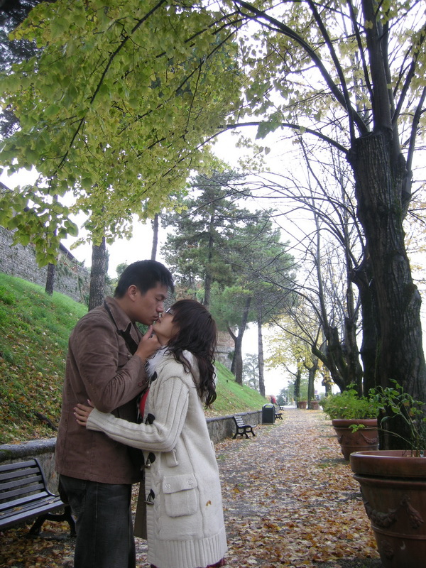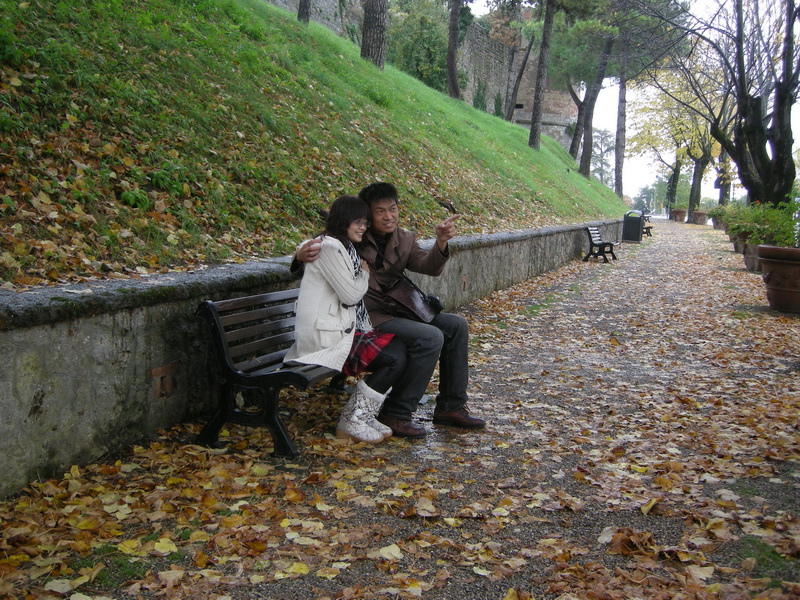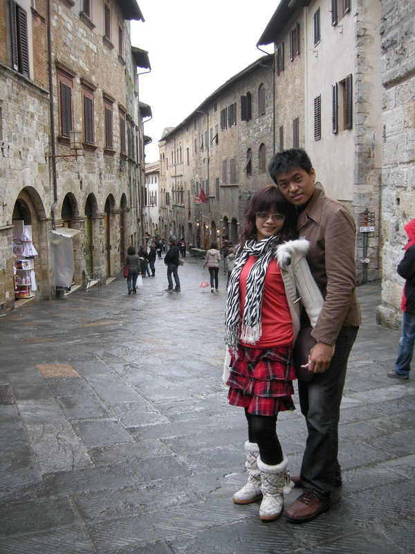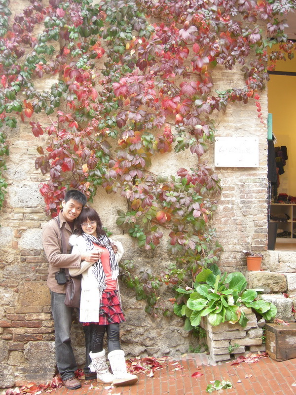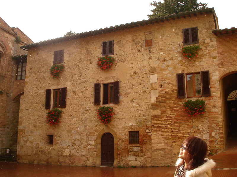 ↓老公幫我拍的,有在下點小雨,看起來像小雪(不太明顯啦!)這天是個時而飄雨,時而出太陽的天氣。為Sangiminano增添了一分雨中的浪漫,但有陽光帶來的溫暖。