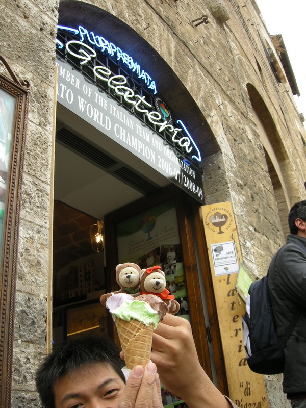 在水井廣場上,有個非常著名的世界第一的冰淇淋。愛吃冰淇淋的我,當然要衝啦~雖然當天下著小雨,又是山上,是有點冷,但是,不衝怎麼對得起自己呢~