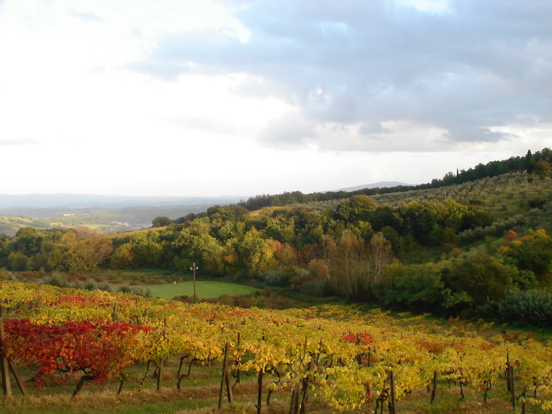 ↓距離吃飯的時間還有約一小時,大夥們就到莊園的後院看看,剛好雨過天青,陽光灑在葡萄園上,再加上下雨過後,這片葡萄園非常清新,空氣中也瀰漫著花果、橄欖、迷迭香,心情非常的輕鬆愉快